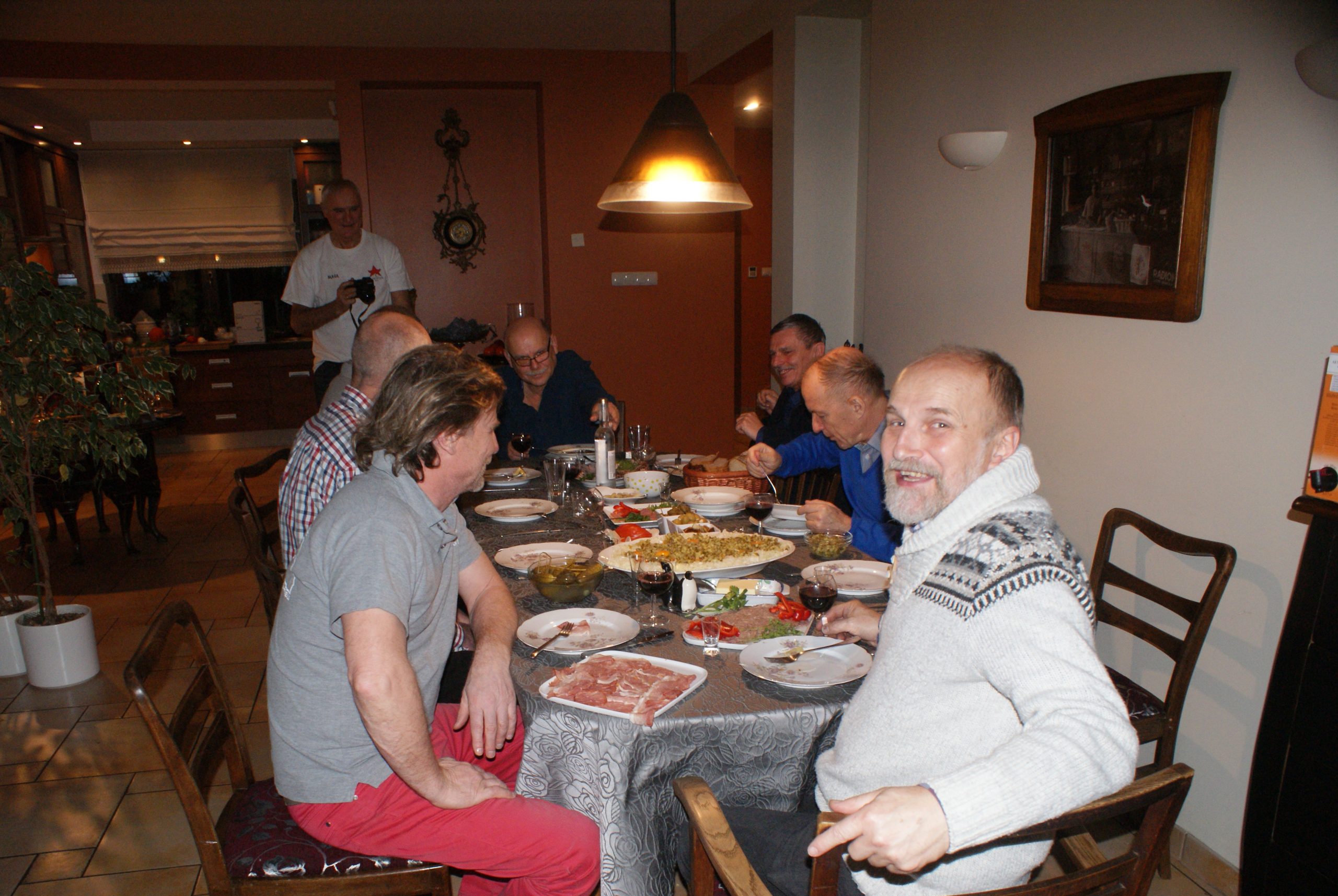 Skoro kwietniowe spotkanie miało charakter celebrująco-wspomnieniowy to kiedyś jednak trzeba było porozmawiać o przyszłości i kierunku. Próbując znaleźć pierwszy wolny, wspólnie dostępny termin, dopchaliśmy się aż do połowy listopada. Ale nie zrażeni tym opóźnieniem z werwą wzięliśmy się do dyskusji w gościnnym domu Adasia, przy suto zastawionym stole. Adaś wykazał się niebywałym kunsztem kulinarnym, Tomek zrobił szklaną niespodziankę aby kieliszki nam w rekach nie ciążyły, a Zygmunt zadbał o wspomnienie Kazachstanu…